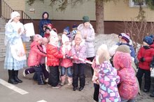Такой большой праздник для всего детского сада подготовили дети совместно с воспитателем по обучению детей татарскому языку. В гости на праздник пришли Әби и Весна - Нэурузбике - они рассказали об истории Навруз-байрама.