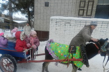 Катание на пони 21.01.2014 В детском саду было организованно катание на пони. Пони зовут Лёля. Лёля покатала детишек, разрешила себя погладить, а ребята угостили её кусочками хлеба