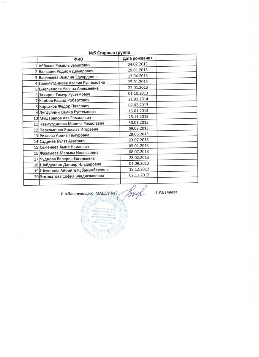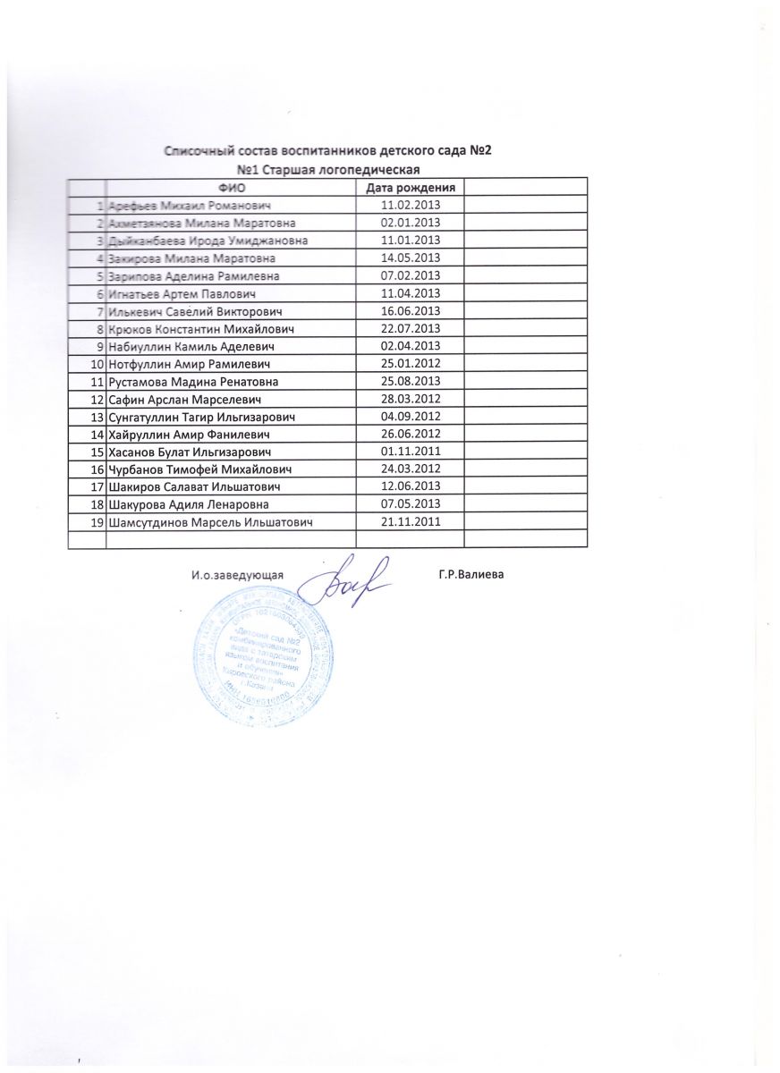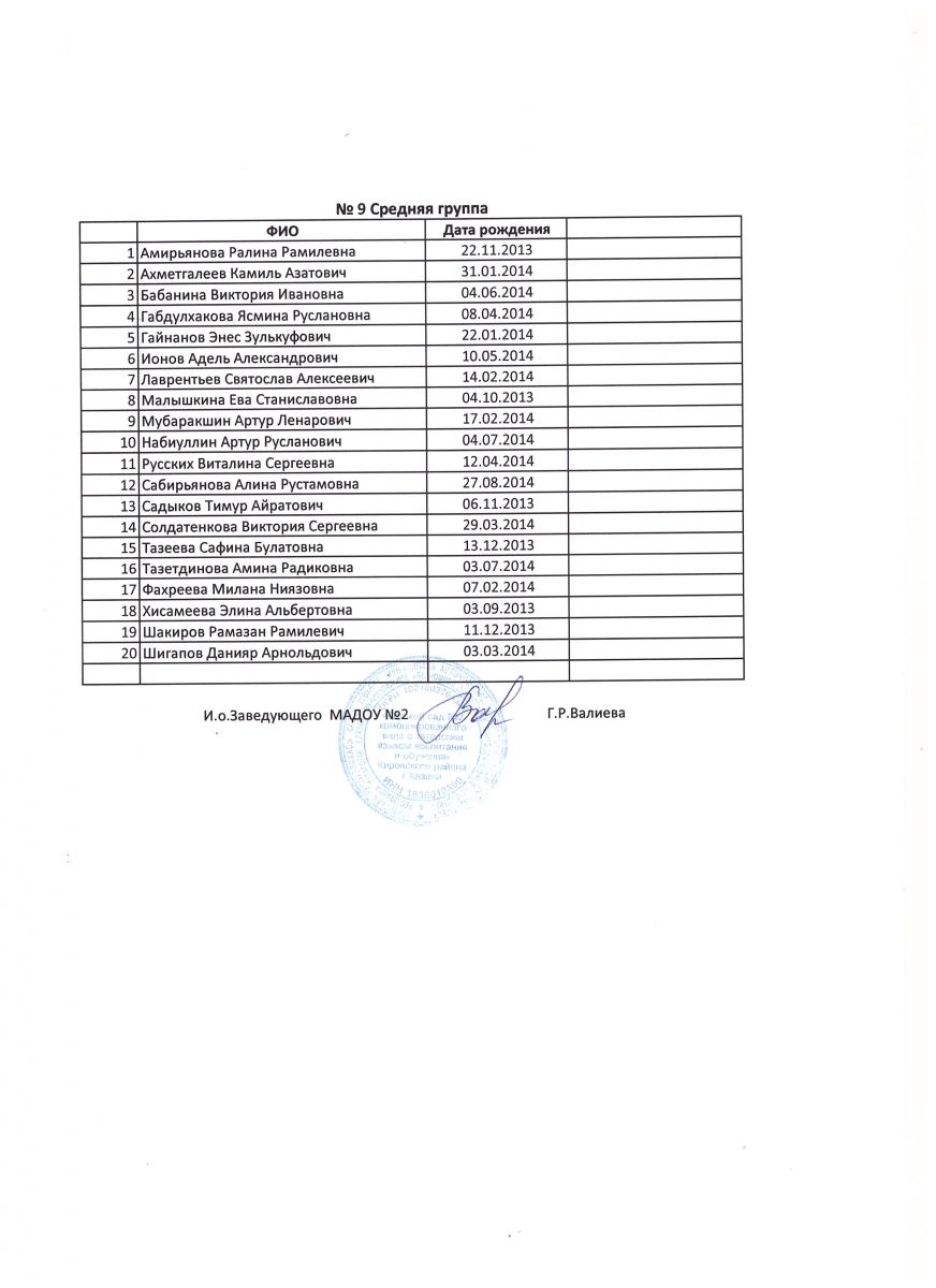 Списки детей на 2018-2019 учебный год
