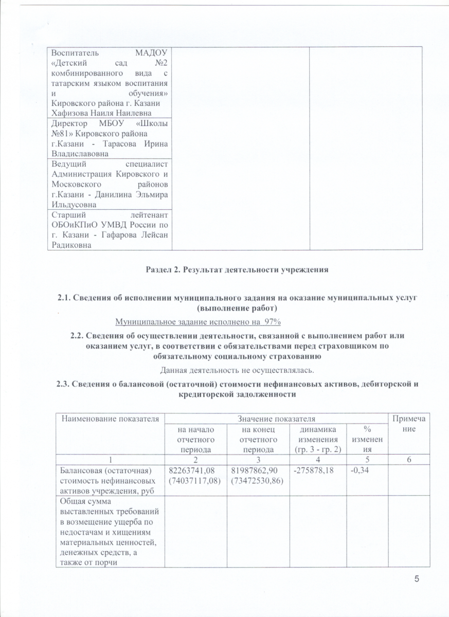 Отчёт о результатах деятельности МАДОУ и об использовании закреплённого за ним муниципального имущества за 2018 год