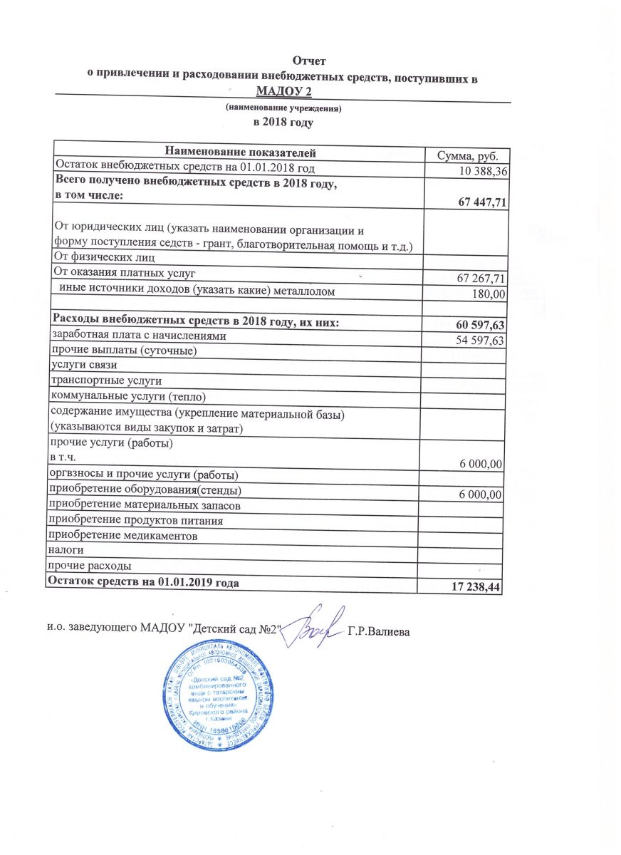 Отчёт о привлечении и расходовании внебюджетных средств за 2018 год