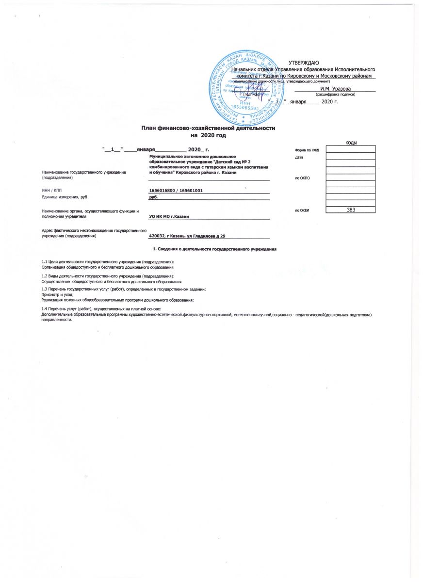 План финансово-хозяйственной деятельности за 2020 год
