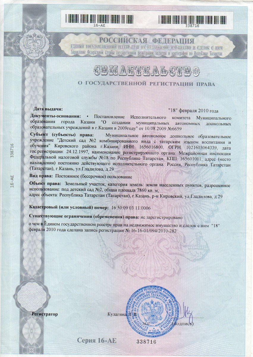 Свидетельство о государственной регистрации права на землю