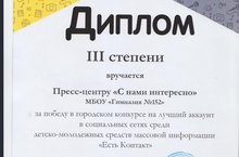Наша школьная редакция "С нами интересно" заняла 3 место в городском конкурсе на лучший аккаунт в социальных сетях среди детско-молодежных средств массовой информации "Есть контакт"