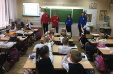 Команда "Здоровое движение" провела познавательный урок на тему "Здоровье начинается с питания" в 1 Б классе.