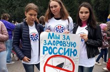 Сегодня в парке отдыха им.М.Горького учащиеся гимназии - члены республиканского проекта "Самостоятельные дети" приняли участие в акции "Мы за здоровую Россию".