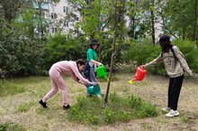 В нашей гимназии работает трудовая бригада. Ребята молодцы!