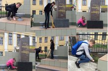 Учащиеся гимназии приняли участие в общегородском субботнике. Ребята привели в порядок территорию пришкольного участка, памятник Лейтенанта Красикова Ю.И.