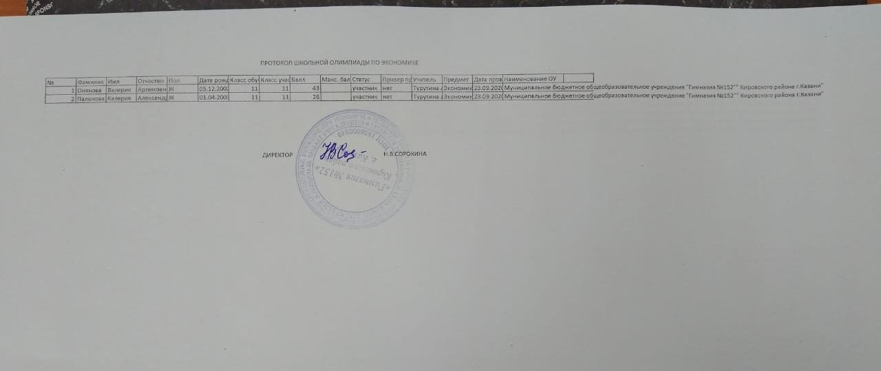 Протокол школьной олимпиады по экономике