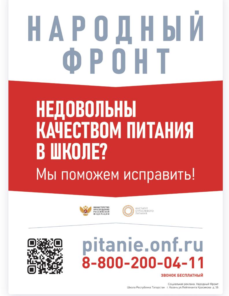 Организация горячего питания в общеобразовательном учреждении осуществляется АО «Департамент продовольствия и социального питания г.Казани».