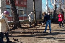На субботник вышли дружно,Все сегодня уберем,Грабли, метлы, все, что нужноМы с собою принесем!Хорошо работать вместе,Ну, дружнее налегай!Станет чисто в этом месте,Приходи зеленый Май! -