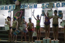 16 апреля в нашем детском саду был проведен Чемпионат по плаванию среди детей подготовительных групп. Соревновались в следующих видах : "морская звезда", "Поплавок", кроль на спине, "торпеда" и др. Дети активно и очень азартно соревновались. Жюри чемпионата фиксировали результаты и оценивали выступления детей. По итогам всех проведенных испытаний было выявлено три победителя, занявшие призовые места, остальные участники были награждены дипломами. Все соревнующиеся получили медали и памятные подарки.