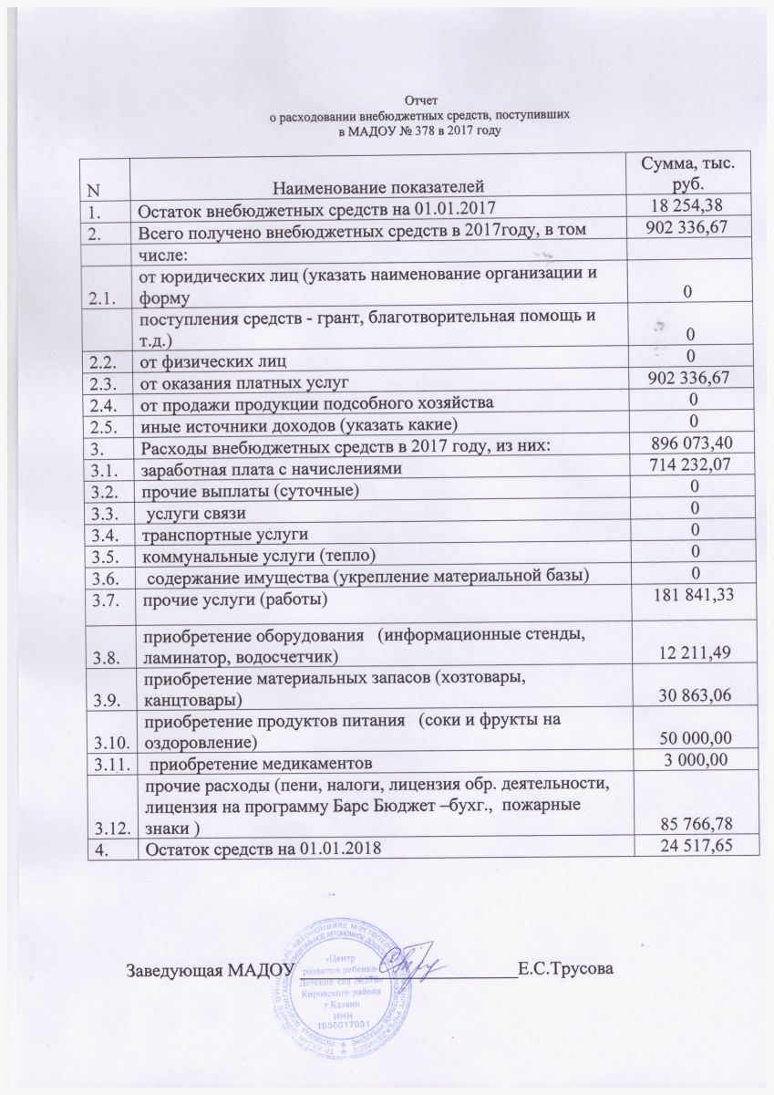 Отчет о привлечении и расходовании внебюджетных средств за 2017г.