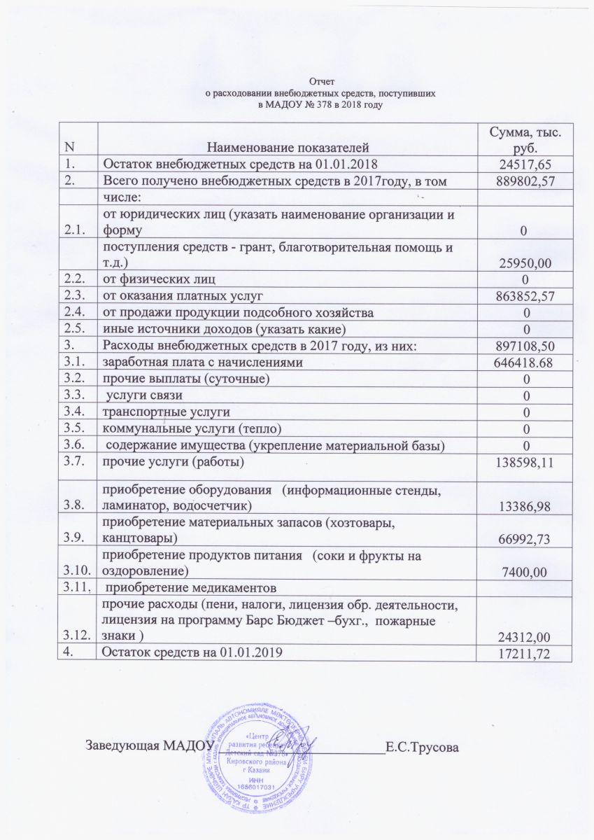 Отчет о привлечении и расходовании внебюджетных средств на 2018г.