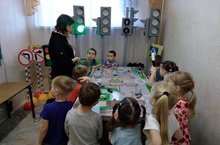 В средней группе прошло "Знакомство с макетом дороги" в кабинете БДД. Ребята разбирали ситуацию с аварией автомобилей.