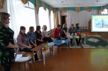 Сегодня состоялся педагогический совет №3 "Работа по реализации УМК по обучению детей государственным языкам РТ в сотрудничестве педагогов, родителей и детей, в целях поддержания языковой среды в ДОУ". Воспитатель по обучению детей татарскому языку Ахметзянова Римма Завдатовна провела с педагогами мастер-класс по организации режимных моментов и игровой деятельности в ДОУ.