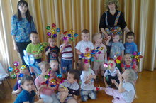 Малыши из 4 группы пригласили своих друзей отпраздновать "День ветерка". Весело вертушки шуршат, забавляют дошколят!