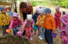 На прогулке у дошкольников много важных дел. Можно понаблюдать за птичками, поиграть в мяч, покачаться на качели, спеть песенку, вылепить из песка куличики, вдохнуть аромат цветов... А можно позаботиться об этих слабеньких кустиках! Что там вырастет!?