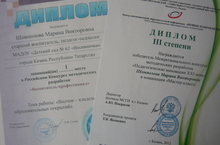 Педагоги детского сада активные участники конкурсов методического мастерства. Получен Диплом Российского образовательного центра "Дарование" за 1 место в конкурсе методических разработок "Воспитатель-профессионал", тема: "Волчок - кладезь образовательных открытий". Получен Диплом Центра инновационной образовательной информации "НОВЫЕ НАПРАВЛЕНИЯ" за 3 место в конкурсе "Педагогические инновации XXI века" в номинации "Мастер-класс", тема "Удивительное - рядом!"