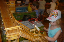 В нашем посёлке, силами энтузиастов, организован и поддерживается на хорошем уровне музей "боевой и трудовой славы" жителей Юдино. Экспозиция размещена в двух небольших залах Дворца культуры железнодорожников. Сегодня дети средней группы познакомились с доступными для понимания экспонатами музея. Это: старинный граммофон, станционный колокол, макет железнодорожной горки с деревянным мостом и вышками, исторический телефон, пулемёт "максим", школьная парта бабушек и дедушек. Очень трудно "не трогать руками", хочется всё обследовать. Дети вернулись в детский сад с большими впечатлениями.