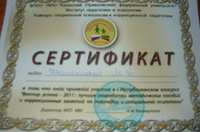 Педагоги детского сада: Шомполова М.В., старший воспитатель; Кирягина О.В., учитель-логопед; Алендеева О.А., воспитатель, приняли участие в первом Республиканском конкурсе авторских разработок. Конкурс организован ФГАУО УВПО "Казанский (Поволжский) Федеральный университет". Сегодня, 31.01.2012 года, подведены результаты. Нашим педагогам вручены сертификаты за участие! Поздравляем! Так держать!