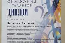 Поздравляем хореографический коллектив "Звездочки" с дипломом 1 степени в номинации "Детский танец". Муз.руководитель Тавангирова А.В.