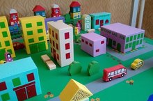 Вот такой макет микрорайона поселился в нашем детском саду! Дети с удовольствием изучают правила дорожного движения, находят свои маршруты и дома... )))