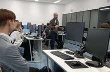 В лабораториях Центра Атомной Энергетики ребят познакомили с тренажером-стимулятором атомного реактора «Аналитический тренажер энергоблока с реактором ВВЭР-1200», на котором можно полностью моделировать технологические процессы, протекающие на современных АЭС. Именно такие реакторы устанавливаются сейчас на всех АЭС, которые строит концерн «Росэнергоатом» по всей стране и за рубежом.