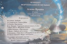 СОЛЬНЫЙ КОНЦЕРТ ЯРЦЕВОЙ АЛЕНЫ (ФОРТЕПИАНО), КЛАСС ПРЕПОДАВАТЕЛЯ Л.И.ГАЙСИНОЙ 04.04.2016