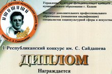 ПОЗДРАВЛЯЕМ ЛАУРЕАТОВ И ДИПЛОМАНТОВ РЕСПУБЛИКАНСКОГО КОНКУРСА ИМ. С.САЙДАШЕВА 21.12.2015