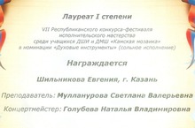 Поздравляем учащуюся духового отделения Шильникову Евгению со званием Лауреат I степени VII Республиканского конкурса-фестиваля исполнительского мастерства «Камская мозаика»