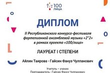 ПОЗДРАВЛЯЕМ ПОБЕДИТЕЛЕЙ Республиканского конкурса фортепианной ансамблевой музыки "2*2" в рамках проекта "100/лица":