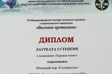 Младший хор "СОЛОВУШКА" - ЛАУРЕАТ 1 степени