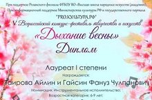 ПОЗДРАВЛЯЕМ ПОБЕДИТЕЛЕЙ V Всероссийского конкурса-фестиваля творчества и искусств "ДЫХАНИЕ ВЕСНЫ"