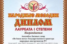 Поздравляем победителя XIV Всероссийского конкурса ансамблей и оркестров народных инструментов "НАРОДНЫЕ МЕЛОДИИ" МИХАЙЛОВА РИНАТА ДАНЕСОВИЧА - Лауреат 1 в составе Ансамбля басовых домр "De basso nova" Государственного оркестра народных инструментов Республики Татарстан.