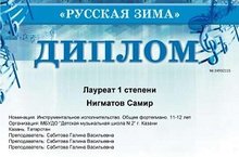 Поздравляем победителя Международного многожанрового конкурса "Русская зима" САМИР НИГМАТОВ - Лауреат 1