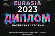 Поздравляем победителей Международной премии "EURASIA" Камерный ансамбль преподавателей и учащихся "Вдохновение" - Лауреат 1. Руководитель Христофорова Светлана Анатольевна. Концертмейстеры Соколовская Марина Борисовна, Мазо Екатерина Николаевна.