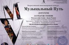 Поздравляем дуэт Миндыгулову Алину и Додина Родиона с победой в Всероссийском многожанровом конкурсе "Музыкальный путь" класс преподавателя Михайлова Рината Данесовича , концертмейстер Бакирова Карина Сергеевна