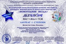 Поздравляем Лауреата VI открытого международного конкурса-фестиваля детского, юношеского взрослого творчества "Новогодняя звезда" 26.01.2023