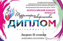 Поздравляем Лауреата Всероссийского конкурса искусств "Территория творчества" 01.11.2022