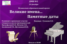 КОНЦЕРТ "ВЕЛИКИЕ ИМЕНА... ПАМЯТНЫЕ ДАТЫ" 16.12.2019