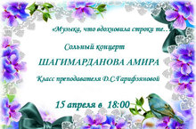 СОЛЬНЫЙ КОНЦЕРТ АМИРА ШАГИМАРДАНОВА (ФОРТЕПИАНО), КЛАСС ПРЕПОДАВАТЕЛЯ Д.С.ГАРИФЗЯНОВОЙ 16.04.2019