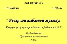 КОНЦЕРТ "ВЕЧЕР АНСАМБЛЕВОЙ МУЗЫКИ" 06.03.2018