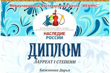 ПОЗДРАВЛЯЕМ ЛАУРЕАТА ВСЕРОССИЙСКОГО ФЕСТИВАЛЬ-КОНКУРСА ДЕТСКОГО, ЮНОШЕСКОГО И ВЗРОСЛОГО ТВОРЧЕСТВА "НАСЛЕДИЕ РОССИИ" 13.03.2018