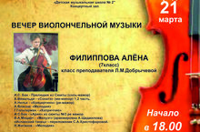 СОЛЬНЫЙ КОНЦЕРТ ФИЛИППОВОЙ АЛЁНЫ, (ВИОЛОНЧЕЛЬ) КЛАСС ПРЕПОДАВАТЕЛЯ ДОБРЫЧЕВОЙ Л.М. 21.03.2018