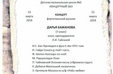СОЛЬНЫЙ КОНЦЕРТ ДАРЬИ БАЖАНОВОЙ (ФОРТЕПИАНО), КЛАСС ПРЕПОДАВАТЕЛЯ ГАЙСИНОЙ Л.И. 23.03.2018