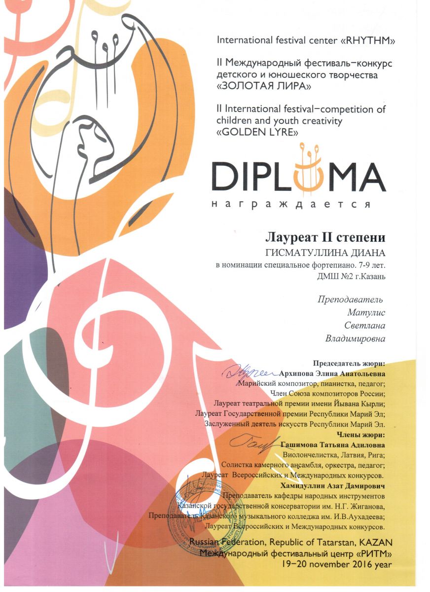 · Гисматуллина Диана (кл. преподавателя Матулис С.В.)