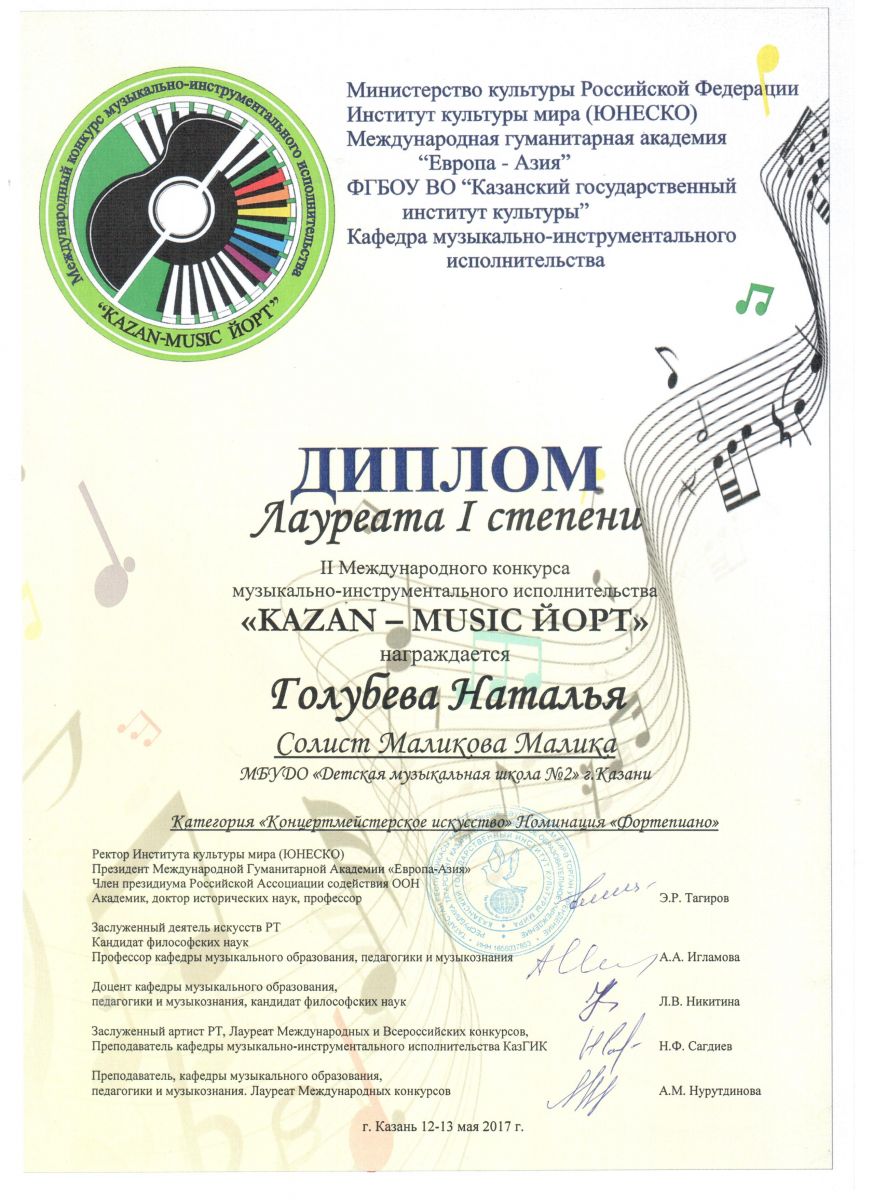 Наталью Владимировну Голубеву, с присвоением звания ЛАУРЕАТ I СТЕПЕНИ в номинации концертмейстерское искусство