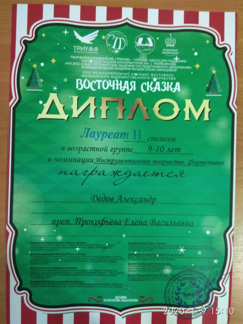 ПОЗДРАВЛЯЕМ ЛАУРЕАТА XXIX МЕЖДУНАРОДНОГО КОНКУРСА-ФЕСТИВАЛЯ МУЗЫКАЛЬНО-ХУДОЖЕСТВЕННОГО ТВОРЧЕСТВА "ВОСТОЧНАЯ СКАЗКА"