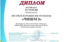 Поздравляем ансамбль народных инструментов "Чишмэ", ставших лауреатом II степени на Всероссийском фестиваль-конкурсе исполнителей на традиционных духовых инструментах "Аэрофония". Руководитель Мухутдинов Р.С.